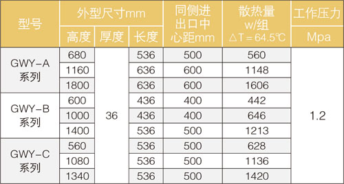 鋼制衛(wèi)浴暖氣片主要技術參數(shù)表