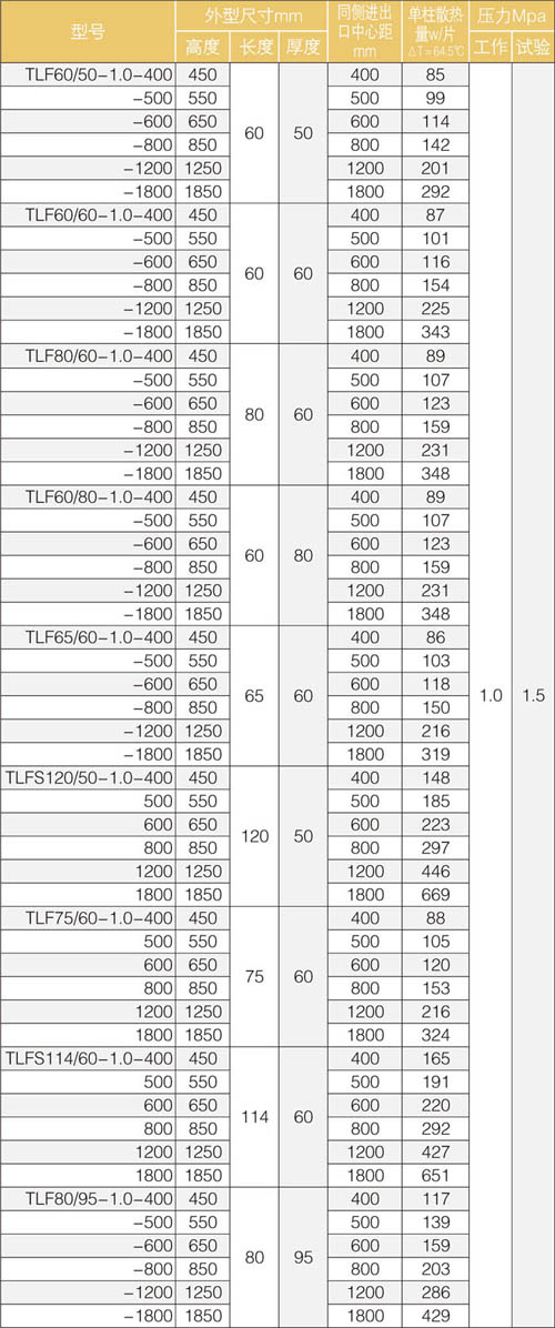 銅鋁復(fù)合暖氣片[春系列]主要技術(shù)參數(shù)表
